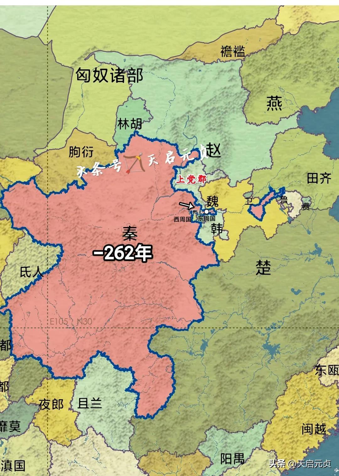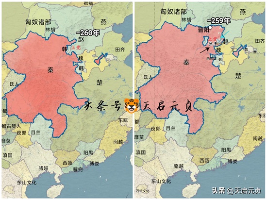 前260年,赵国接收韩国上党,白起遂率军与赵战于长平,打败赵括所率的赵军,坑杀赵军40余万。战后,秦国占领韩国上党地区和包括晋阳城在内的赵国部分太行山以西地区,赵国天险丧失。