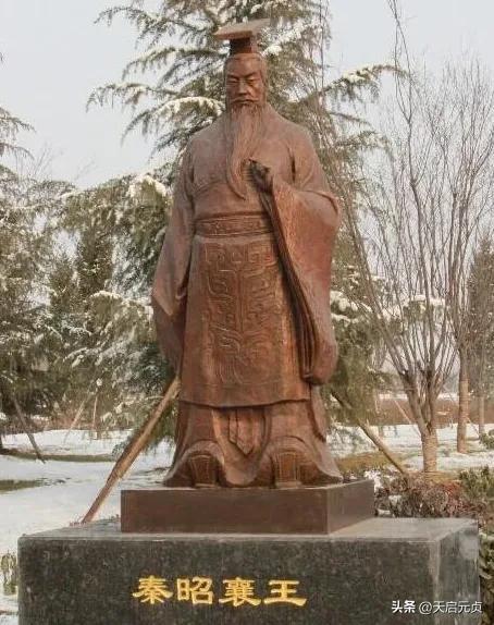 秦昭襄王在位时间长达56年,期间重用战神白起和谋相范雎,远交近攻,多次对东方六国用兵,使秦国的版图扩大了近一倍。其中,8次伐韩,占其2/3国土;15次伐魏,占其1/3国土;8次伐赵,占其1/3国土;2次伐楚,占其1/4国土。此外还远道攻齐,占了一块飞地。可以说,秦始皇日后能够扫灭六国、统一中目,是站在秦昭襄王等巨人先辈的肩膀上完成的。