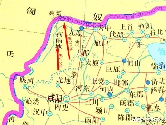 前215和前214年,秦始皇派蒙恬率30万大军北伐匈奴,夺回河套南北地区,重设九原郡,并修筑长城以防御匈奴。