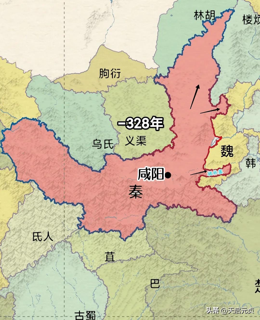 至前328年,魏国黄河以西的土地全部被秦国占领。同时,被三晋控制了数百年的桃林塞也归于秦国,使秦国可以随意东出。秦国在这里修建了函谷关,以加强防御,进退自如。