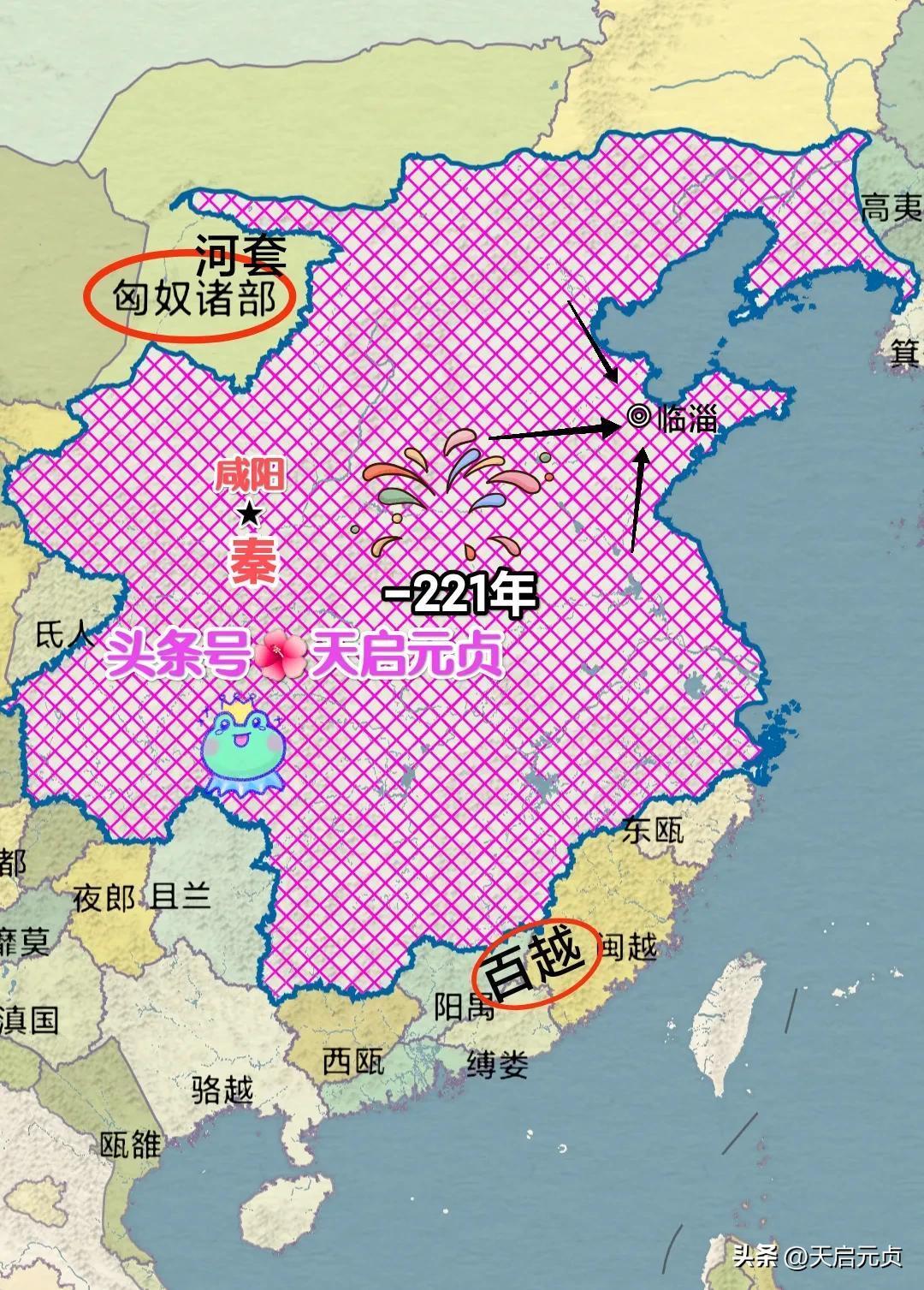 至此,秦王嬴政“奋六世之余烈,振长策而御宇内”,终于统一了六国,结束了持续200多年的战国时代和800多年封建社会,建立了中国历史上第一个统一的、多民族的专制主义中央集权王朝——秦朝,秦国升级为秦朝。同年嬴政称帝,也从秦王变为秦始皇,实现了历史性的跨越。但是,南部的“百越之地”仍未归附,北方的“河套地区”还在匈奴手里。