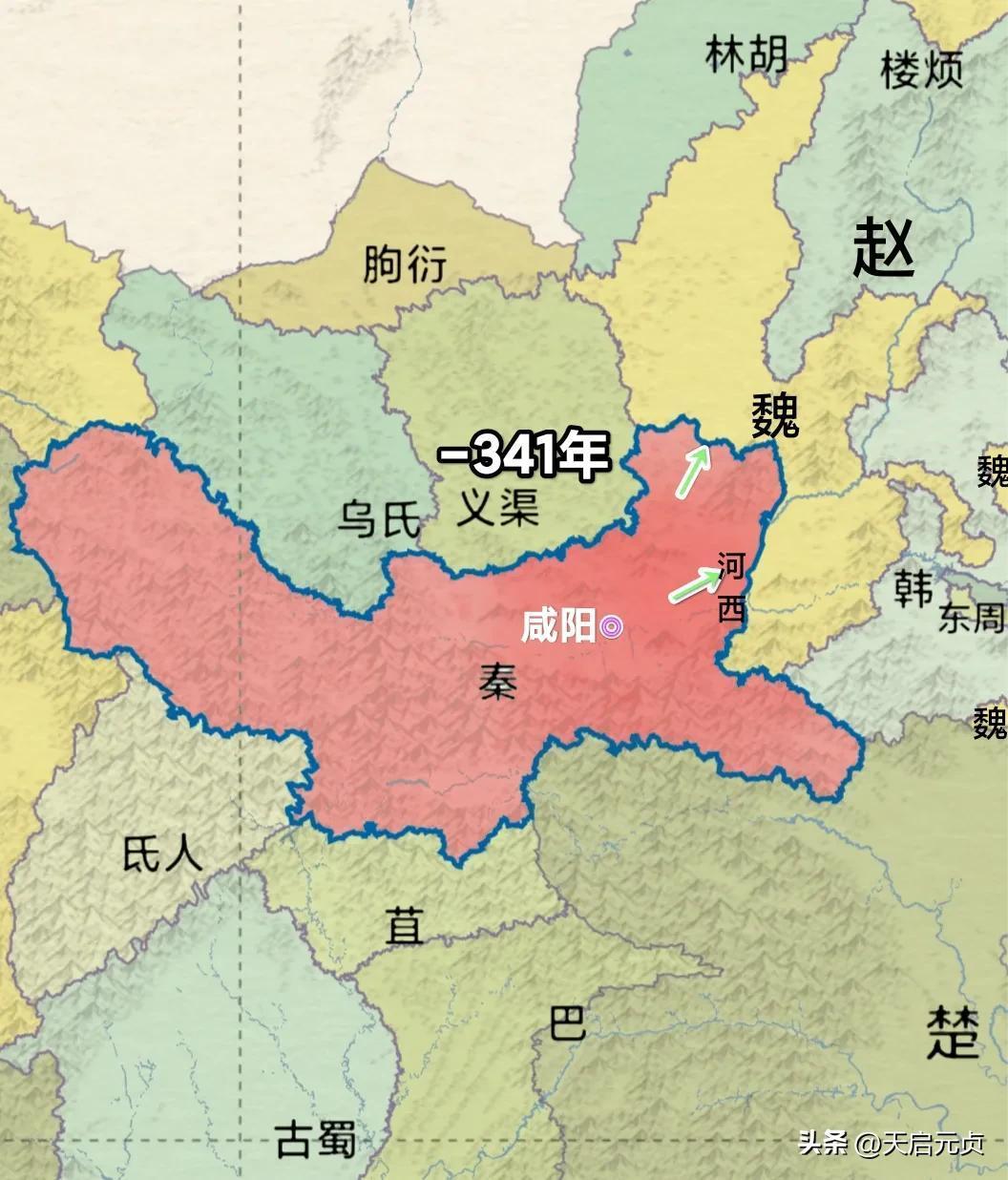 秦国强大起来之后,开始找魏国复仇雪恨,多次打败魏国。前341年,商鞅率领秦国军队打败魏军,还俘虏了魏国公子卬,魏国不得割让河西之地求和。真是“三十年河东,三十年河西”,此时的秦国再也不当初那个被魏国随意拿捏的“弱鸡”了。