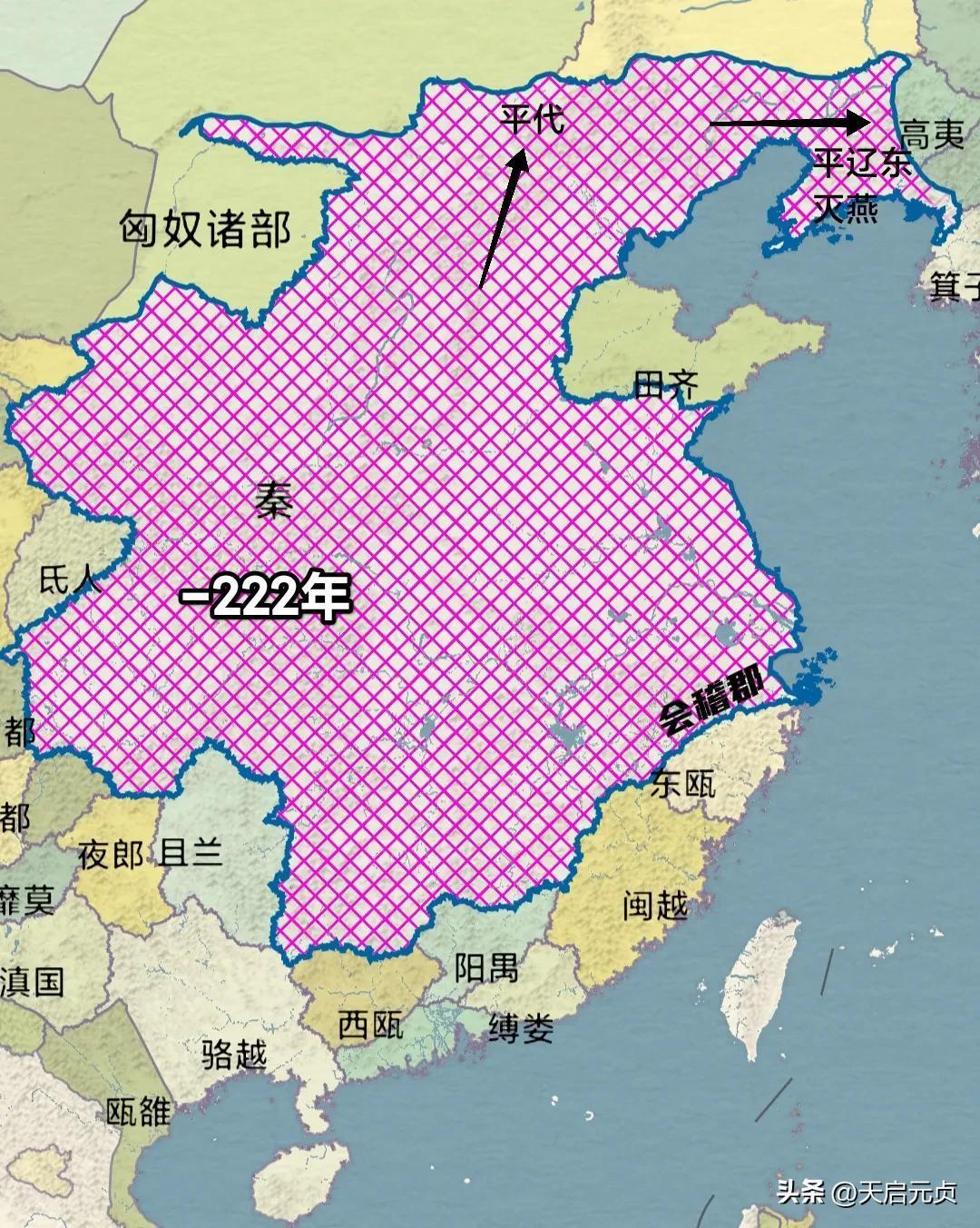 前222年,秦将王贲奉命进军东北,扫灭赵、燕残余势力。王贲先攻占辽东,俘燕王喜,灭亡燕国;后攻占代地,俘代王嘉,彻底扫灭赵国残余力量。