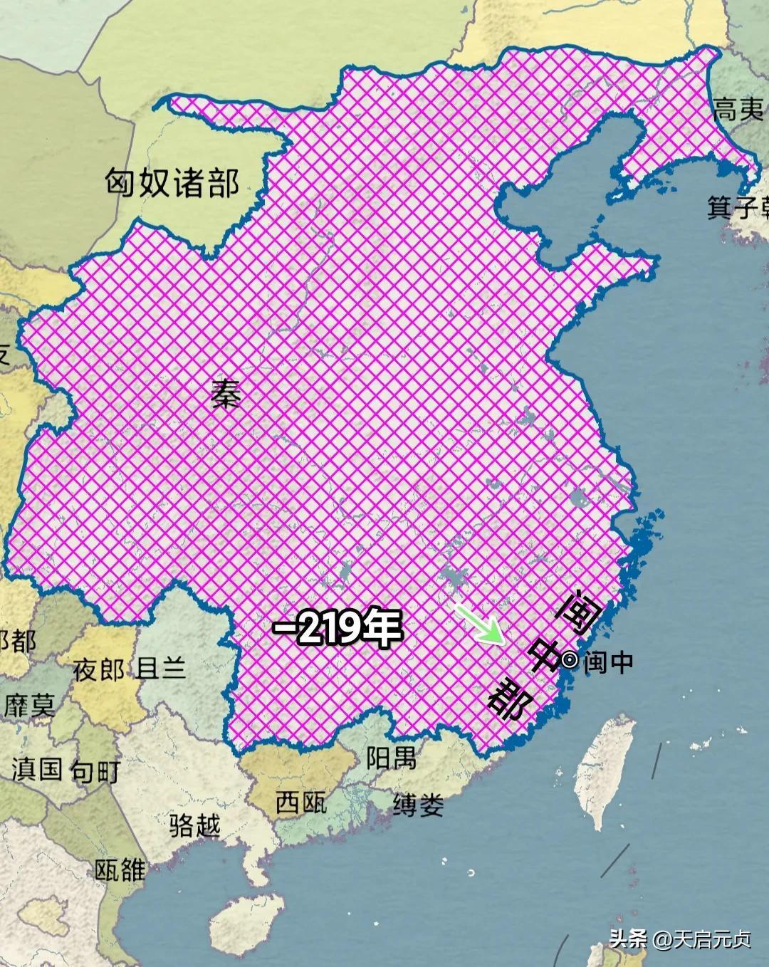 前222-221年,秦军入闽,降服越国后裔与当地土著建立的东瓯和闽越,置闽中郡。