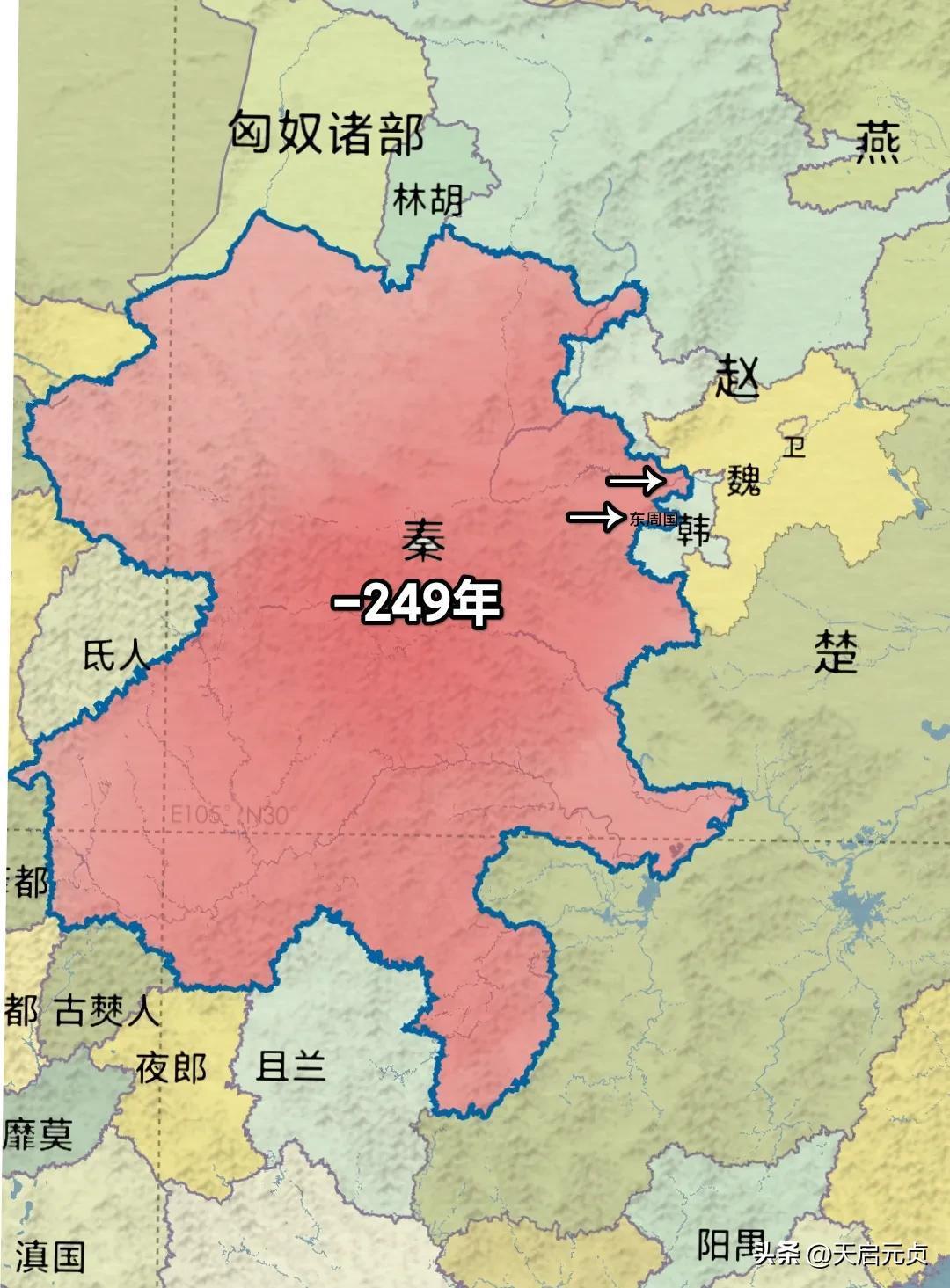 到前246年,韩国只剩一两郡之地,赵、魏国土丧失大半,楚、齐、燕偏居一方,六国彼此之间还相互征伐,争斗不断。秦国在国土、人口和兵力上已经占据绝对优势,统一在望。