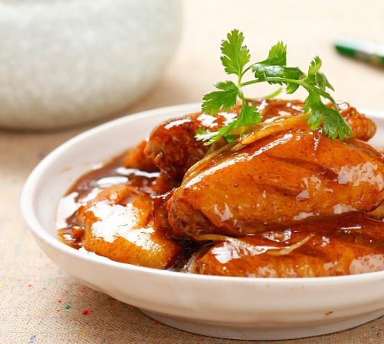 5、倒入可乐,没过鸡翅即可,大火烧开,中小火炖至汤汁半干,放盐,味极鲜调味,大火把汁收干即可。