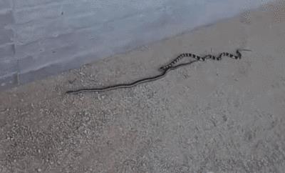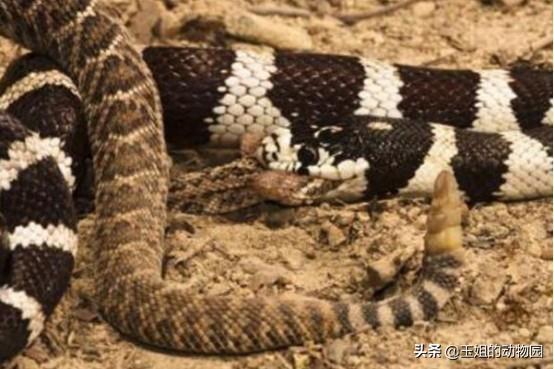 而且它还具有一定的免疫血循环毒素能力,这种免疫能力对当地响尾蛇尤为有效,这也是它体型较瘦却能制服毒蛇的原因。毒蛇都不擅长缠绕,一条免疫毒性的蛇缠在脖子上根本无力反击,就算咬它也没用,黑白王蛇缠住猎物后死不松口,仿佛就像一条麻绳勒在脖子上,直到猎物窒息而亡,就是这样无赖的打斗方式,也让响尾蛇十分胆怯,见到黑白王蛇只能原地不停的摇晃尾巴,企图起到威慑的作用吓退敌人。如果说黑白王蛇是响尾蛇的克星,那么我国王蛇的实力又如何呢?