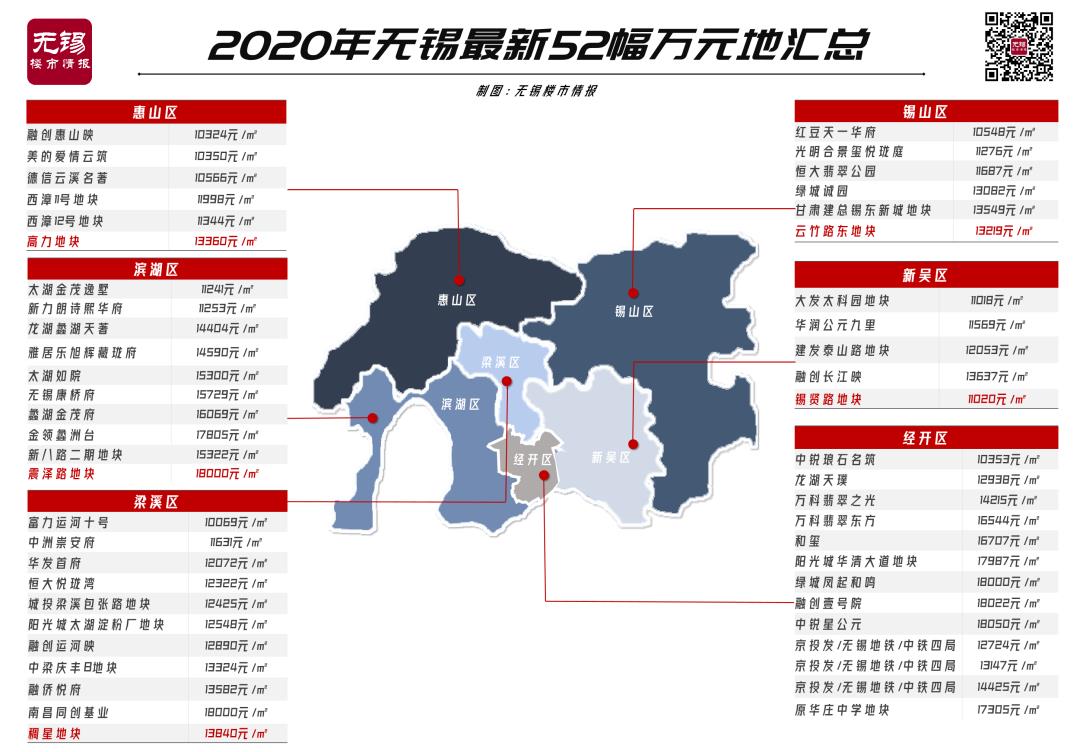 目前,无锡共有52块万元地,其中,滨湖区占了10块!