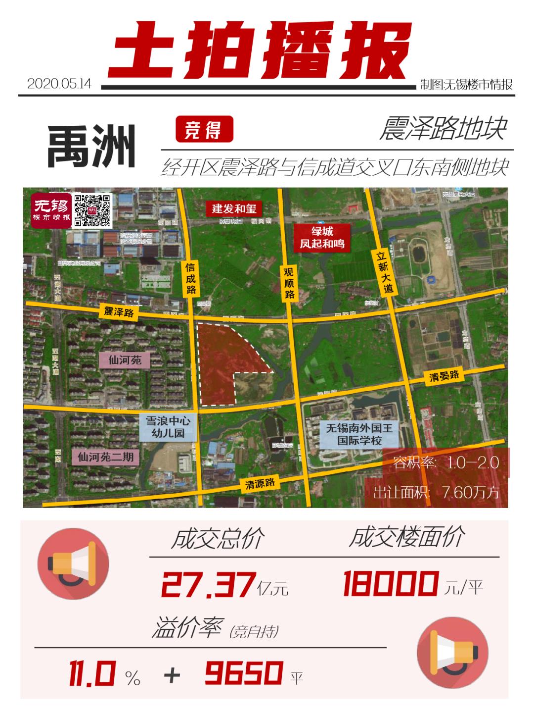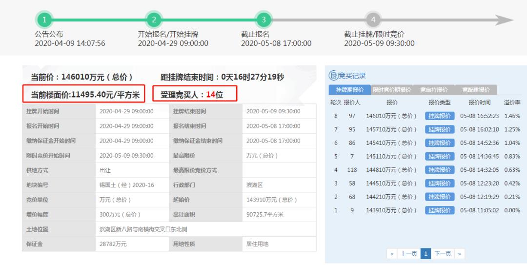 5月14日滨湖区震泽路地块再次开拍,起拍楼面地价16216元/㎡,是无锡土拍市场的最高起始价。