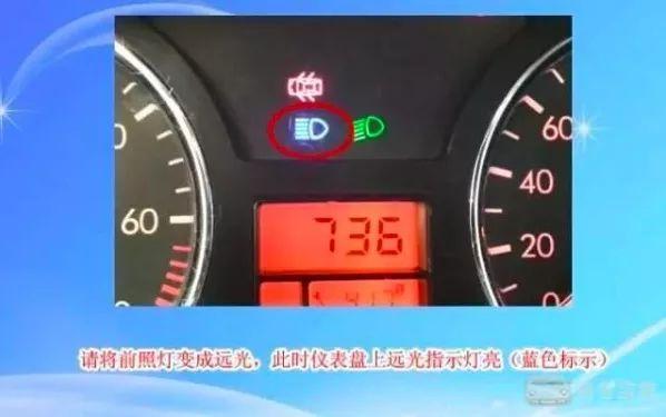此题只需将灯光操纵杆向上再抬一次,将远光改为近光即为合格。