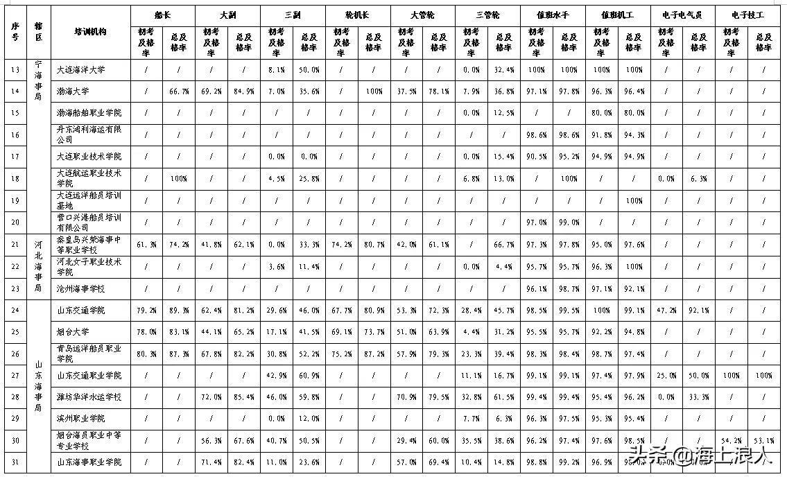 下面图片就是全国各省市所有的培训学校名录,以及他们考试培训的通过率怎么样。考试覆盖面怎么样?那个学校能不能考三副三管或者电机员?