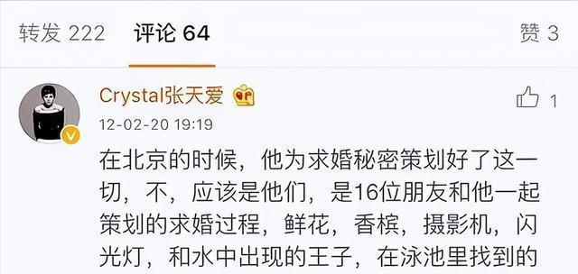 2012年,张天爱在社交媒体上发文称李子峰已成功求婚。