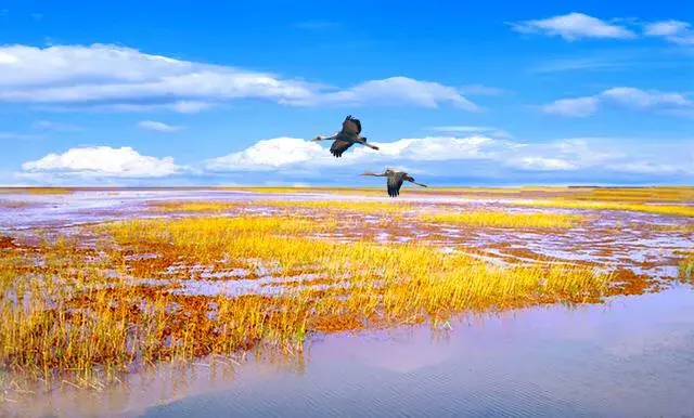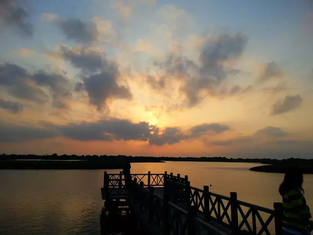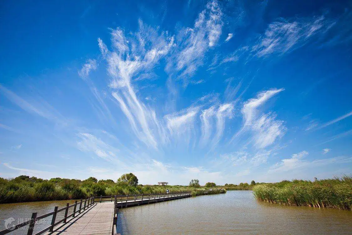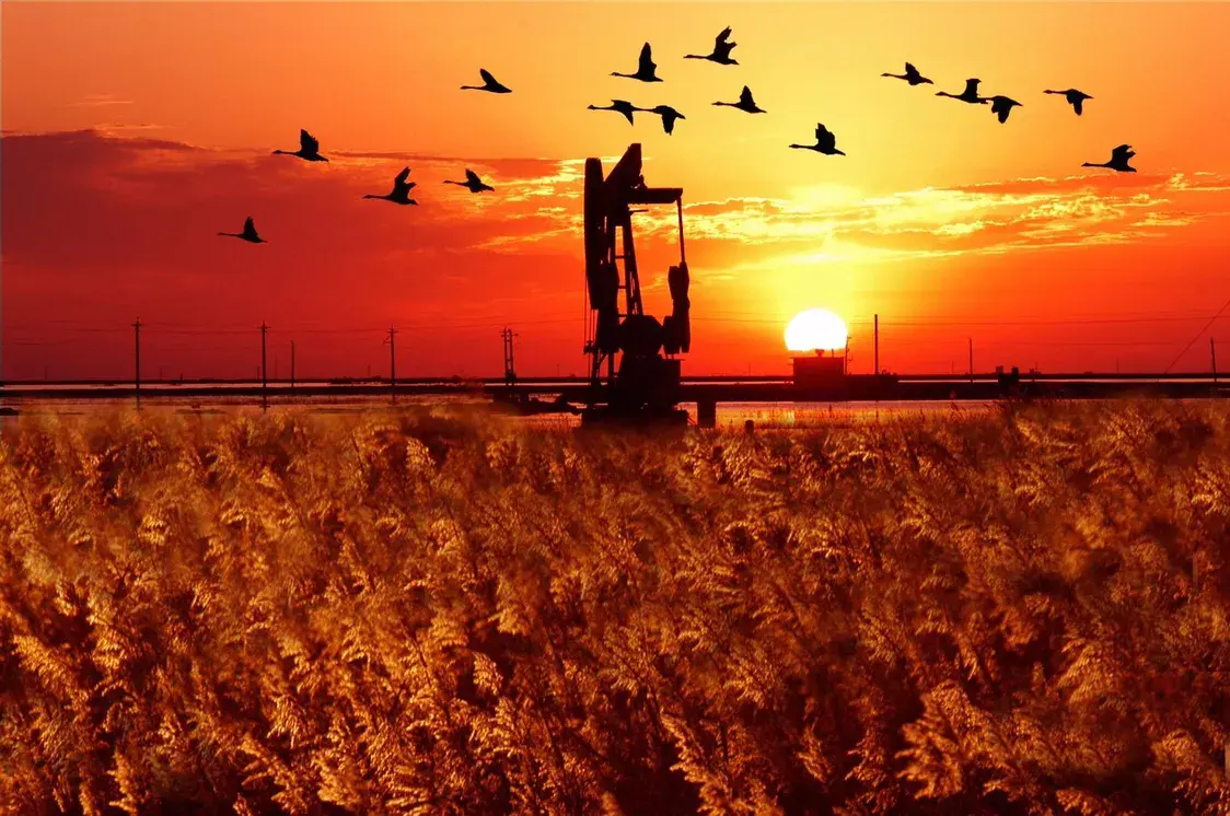 位于东营市东北部的黄河入海口,这里拥有一片广袤的滨海滩涂和河口湿地,生长着一望无际的芦苇和“红地毯”(翅碱蓬)。这里是各种候鸟栖息的天堂,你可以观赏到丹顶鹤、天鹅等鸟类的优美身姿,还能看到黄河与渤海交汇处的分明色彩。在这里,你不仅能看到动人的日出,还可以在远处油井设备的衬托下,欣赏到绝美的日落画面。
