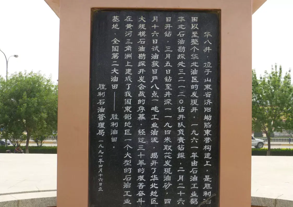 是在燕山以南,太行山以东 ,大别山以北,渤海湾以西40万平方公里的华北平原内进行石油资源普查的第八口探井。位于东营市东营区东营村。1961年4月16日,该井首次用9毫米油嘴求产,获日产8.1吨工业油流,成为当时东部渤海湾地区第一口见原油的探井,也是胜利油田的发现井。该井是在前七口井钻探资料的基础上,结合当时地矿部航测大队提供的东营地区重磁力测量图,构造图进行设计的。1961年2月26日开钻,仅用35天就顺利完井,完钻井深1755.88米,全井共取岩芯50.2米平均收获率31.1%井壁取芯25处,成功率68%;固井质量、井深 质量均一次合格。原石油部部长余秋里同志对这口井的钻探非常重视,在转入试油时专门做了重要指示,加上技术人员精心策划和实施,以至获得圆满的成功。华八井的钻探和试油的成功,实现了华北盆地早期找油的新突破,进而引出了华北石油大会战,并相继发现了大港、华北、冀东、中原等大油田,为我国的石油工业发展树立了新的里程碑。