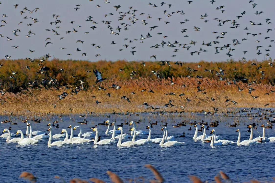天鹅湖作为黄河三角洲生态环境保护区内的主体部分,拥有丰富的渔业资源和鸟类资源。这里鸟类品种繁多,尤以国家二级保护动物天鹅著名。每年11月至次年4月,大批天鹅相约而至,景色美丽壮观,引得游客无数。