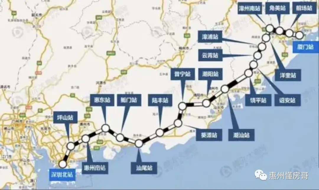 惠州境内站点:惠州南站(即将更名为惠阳站),惠东站。
