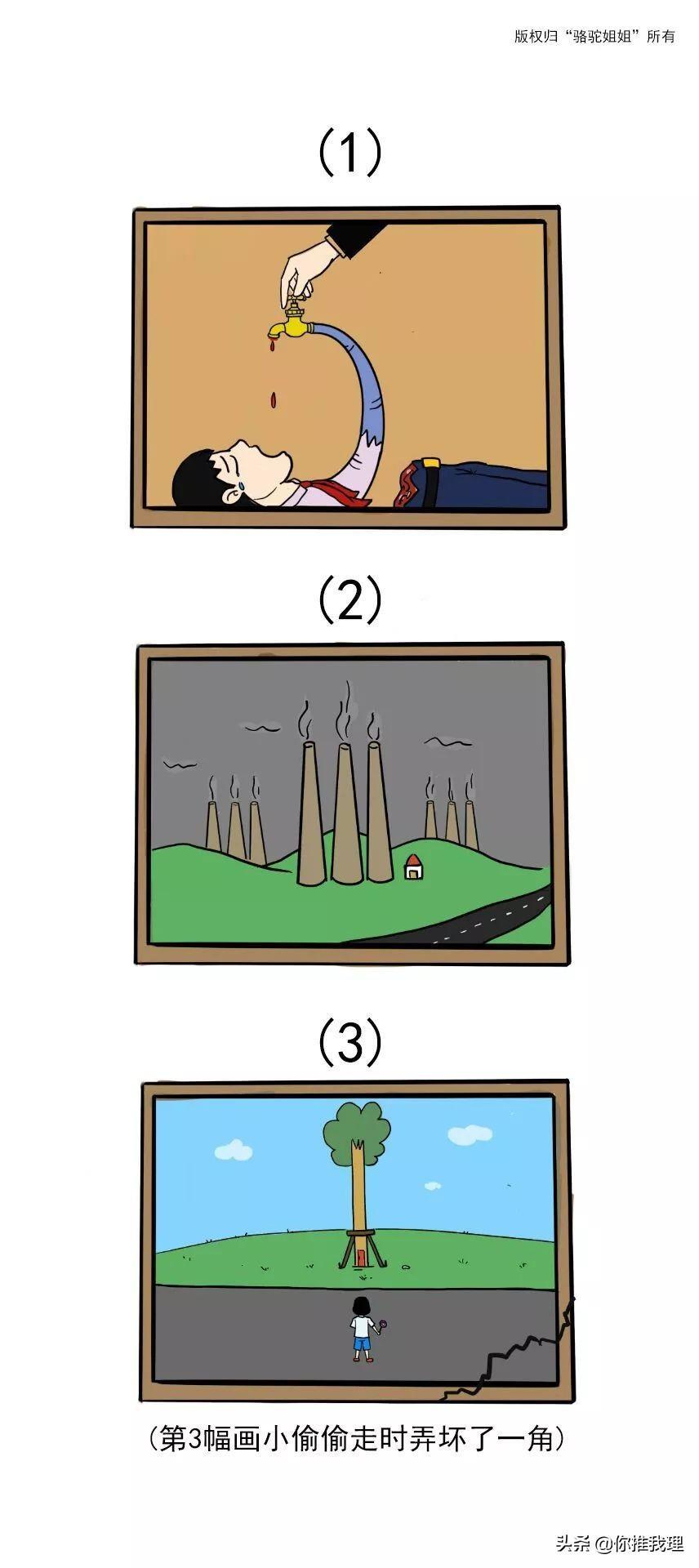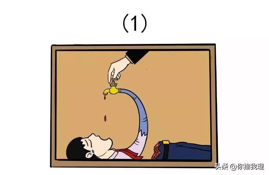从我发过的“灵魂画家”那一篇漫画激起的灵感,在地铁上无意看见一幅节约用水图,把我的整个故事连接起来。三幅画中的第一幅画就是按那张图稍微改变得(血腥了一点)。
