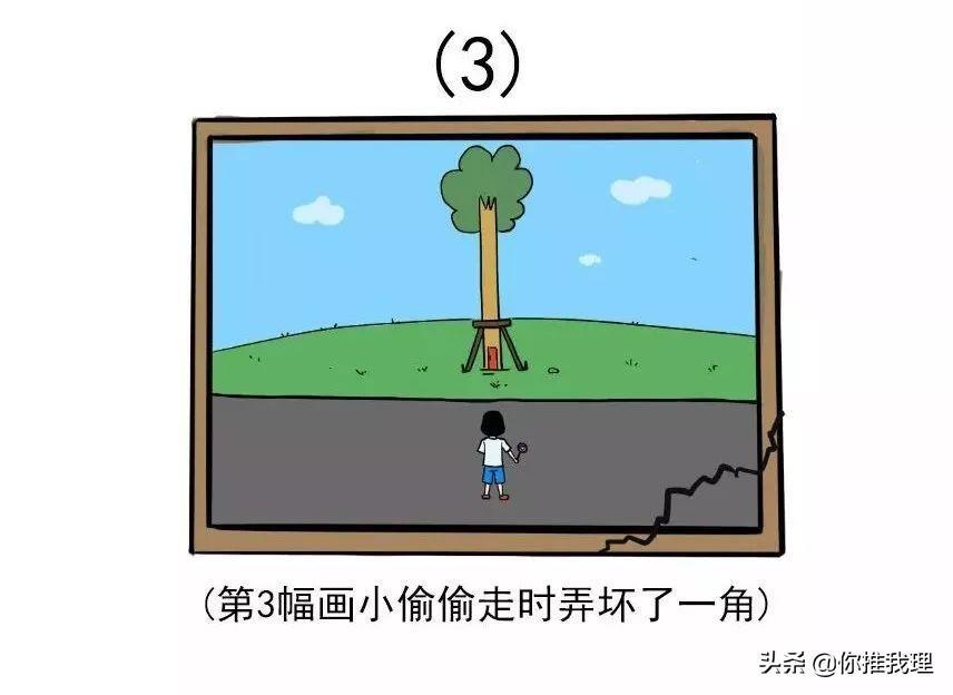 画中一名小孩拿着棒棒糖看着前面仅有的一棵树,小孩没有左手,难道凶手身体有残缺?
