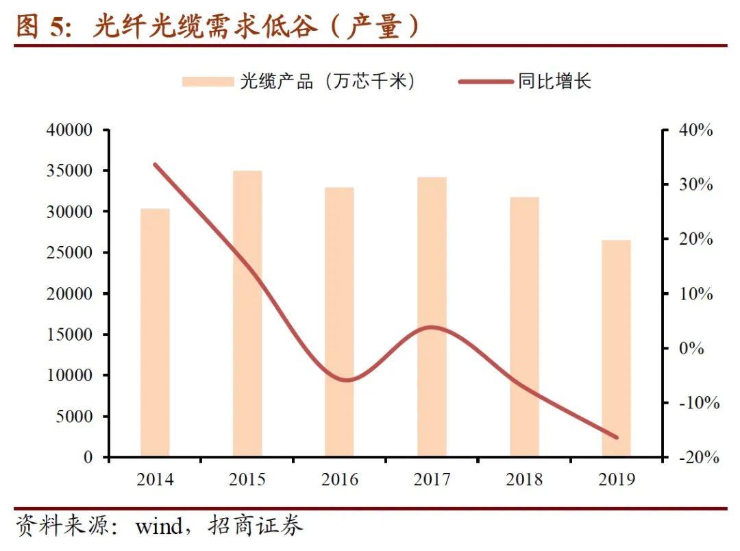 近三年无新产能释放,产能利用率下降。2017 年至 2018 年上半年,受光纤预制棒反倾销政策的影响,光纤主要原材料光纤预制棒供不应求。据此,公司与长飞光纤光缆股份有限公司于 2018年 4 月达成合作协议,拟设立光棒合资公司,公司持股 35%,2019年5月公司建设成立,预计形成年产600 吨光纤预制棒的产能。自 2018 年下半年起,光纤光缆行业整体已经呈现供过于求的态势。光纤光缆市场目前正面临着产能过剩、需求增长放缓、出货量下滑等情形,由于下游需求不足,公司产能扩张处于停滞状态,同时也伴随着产能利用率的下降。