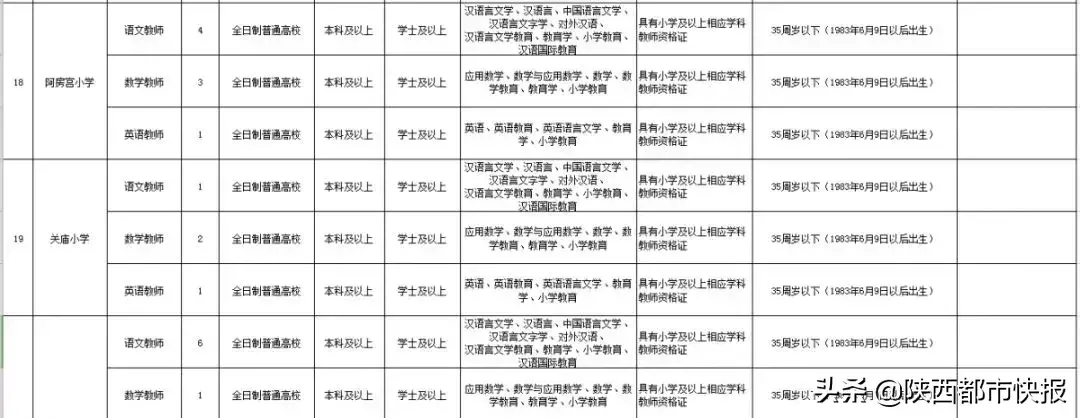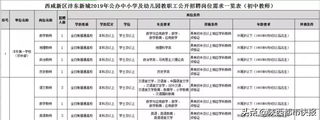 4.中小学教师岗位要求年龄35周岁以下,即1983年6月9日(含)以后出生;幼儿园教职工要求年龄30周岁以下,即1988年6月9日(含)以后出生;