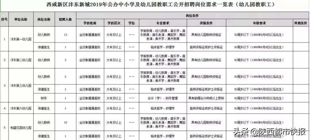 沣东新城现有公办中小学49所,公办幼儿园7所。根据学校发展需要,现面向社会广纳贤才,为上述公办学校(幼儿园)公开招聘394名教职工,相关事项公告如下: