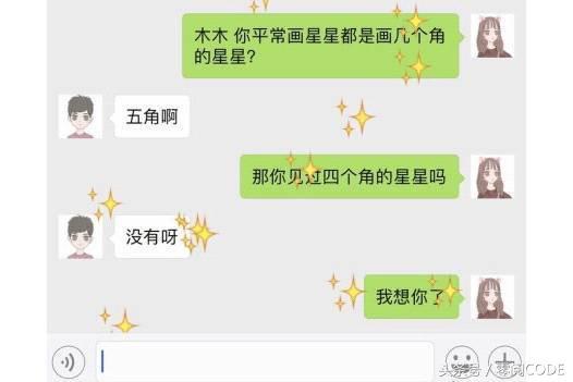 在微信对话框输入“我想你了”,就会有满屏四角星落下:
