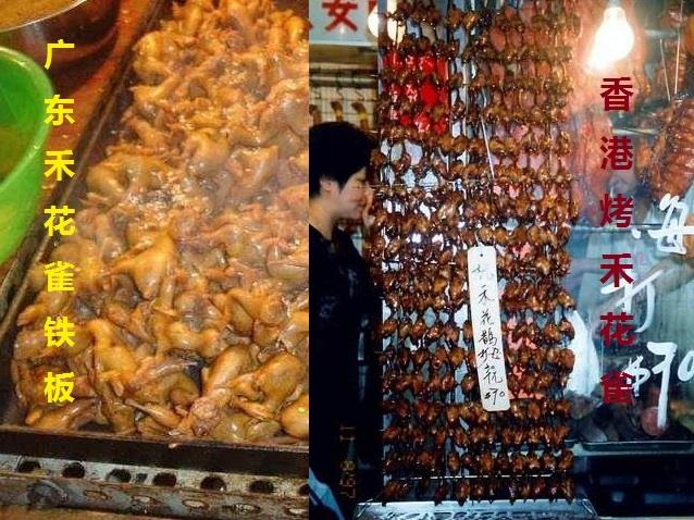 在我国的广东东莞,当地曾经把三禾宴,也就是禾花雀、禾花鲤、禾虫当作是当地美食;广东佛山每年专门举办了禾花雀节,在禾花雀节上, 会有上百万只禾花雀被制作成各种美食;而在我国香港等地,禾花雀又被制成烤肉,直接在当地街头出售。