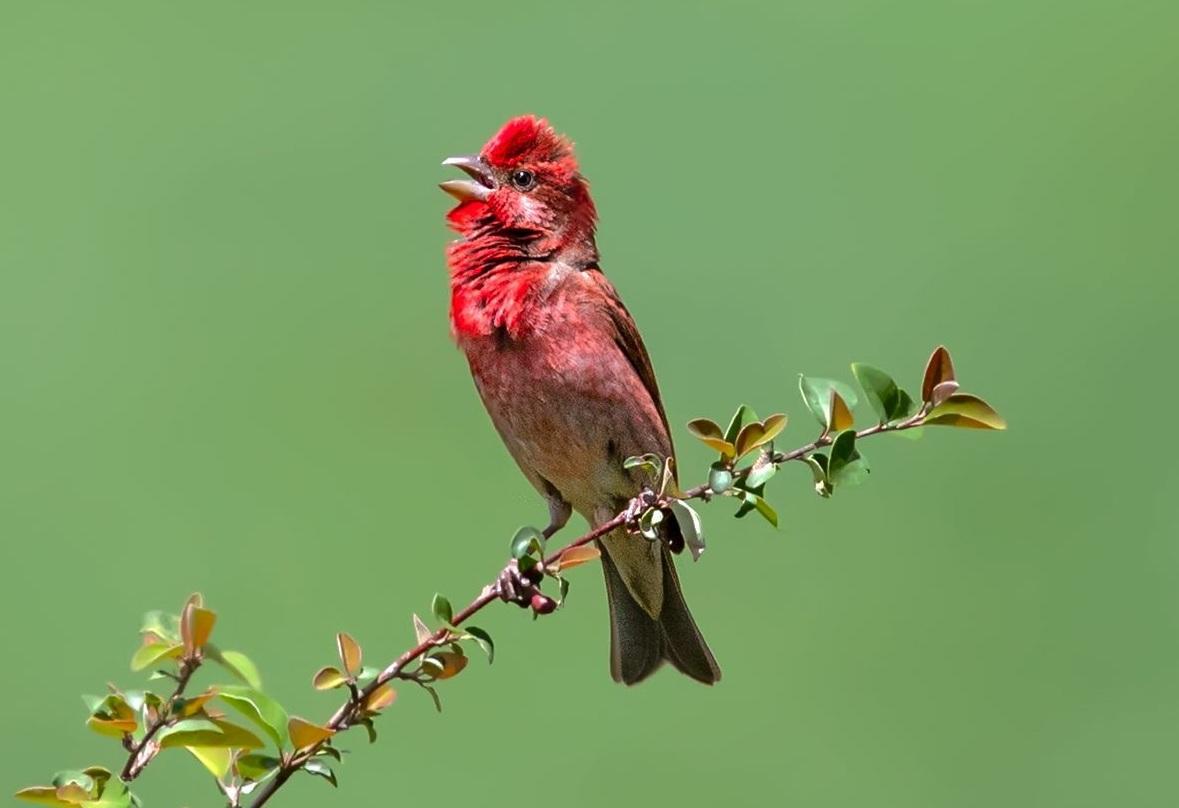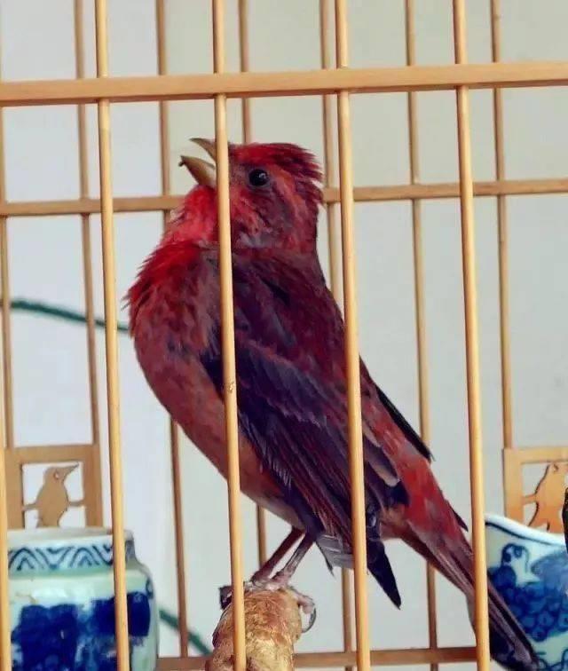 这种名叫麻料的鸟类,有着奇特的特性,就是雄鸟羽毛会随着年龄的增长逐渐变成红色,换一茬毛颜色会深一层,从酒红到枣红再到血红,颜色逐渐加深。