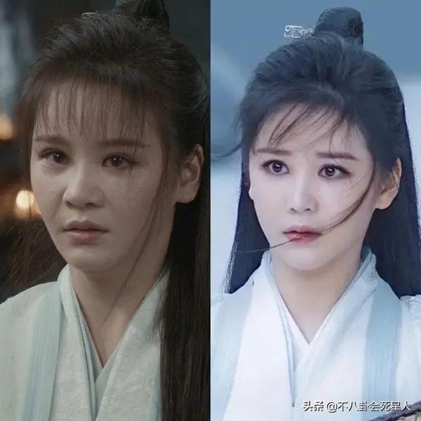 除此之外,邱意浓的脸有一种明显的硅胶肿胀感,鼻子也显得不太自然,凹陷的眼睛看起来有一种莫名的疲倦感,做表情的时候还有种“对眼”的错觉。对比黎姿,佘诗曼,高圆圆等版本的周芷若,被称“最丑周芷若”确实不冤。