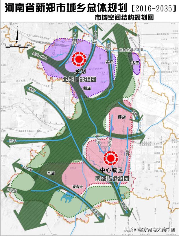 而新郑市里距离郑州最近的就是龙湖镇了,之前叫小乔乡。距离郑州主城区20公里,目前地铁城郊线通达。从市域空间机构规划图来看,以龙湖为主的北部临郑组团已经和新郑市区划到同等的地位!加速与郑州南部新城区的融城!