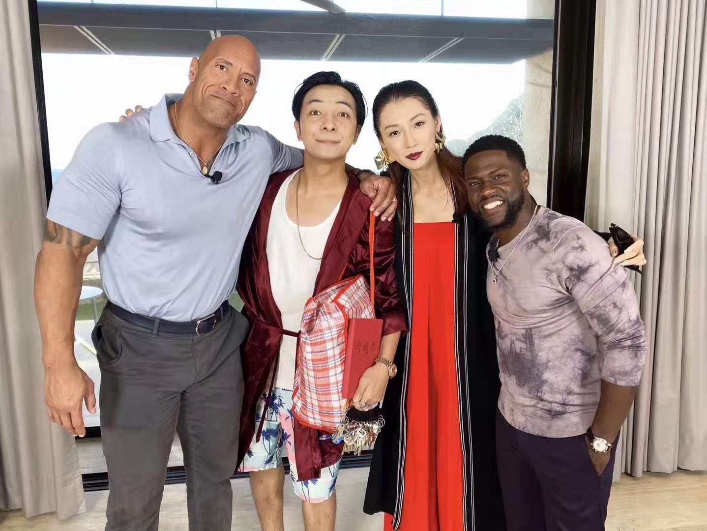 可随着短视频事业的蓬勃发展,郑建鹏也没有忘记当年的明星梦,2019年他就和巨石强森合影。