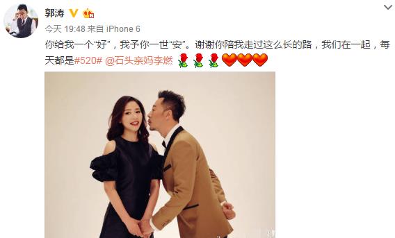 这张照片展现了他们甜蜜温馨的家庭生活,也表达了郭涛对妻子的爱和感激之情。李燃也转发了该微博,并用“孩儿他爹,我爱你一生一世”回应。