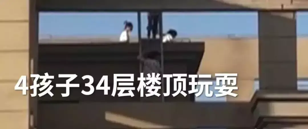 4名熊孩子爬上34楼楼顶玩耍,物业发现后立即将其劝离