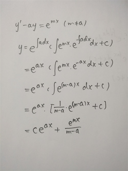 本例中,p(x)=-a,q(x)=e^mx.