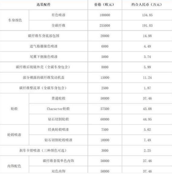 在所有选配项中,最贵的是全车改碳纤维材质,价格将近两百万,就连刹车卡钳改色也需要2.25万。而且这还是欧洲地区的价格,到了国内恐怕要更贵。
