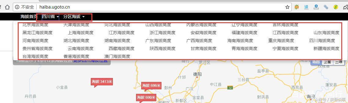 六、点击下方详细海拔位置名称即可进入该地址的详情页,查看海拔地图及相应信息