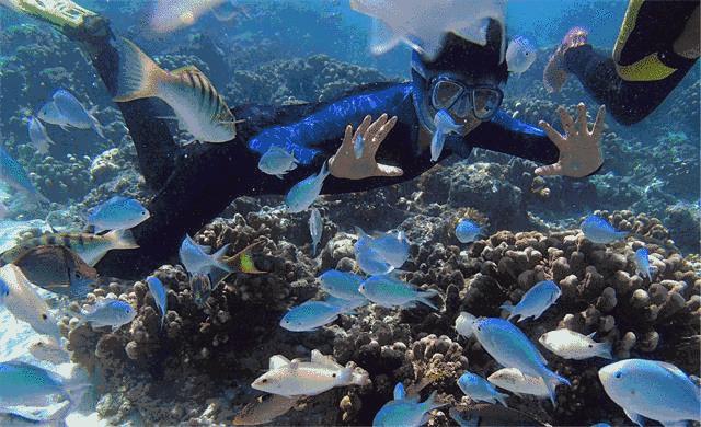与鲨鱼亲密接触、与海龟嬉戏、看美人鱼表演