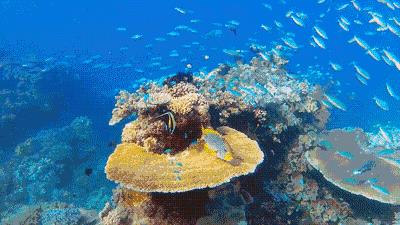 走在下面,头顶的海水仿佛化作天空,各种海洋生物在一片湛蓝中游动,美伦美奂,触手可及。