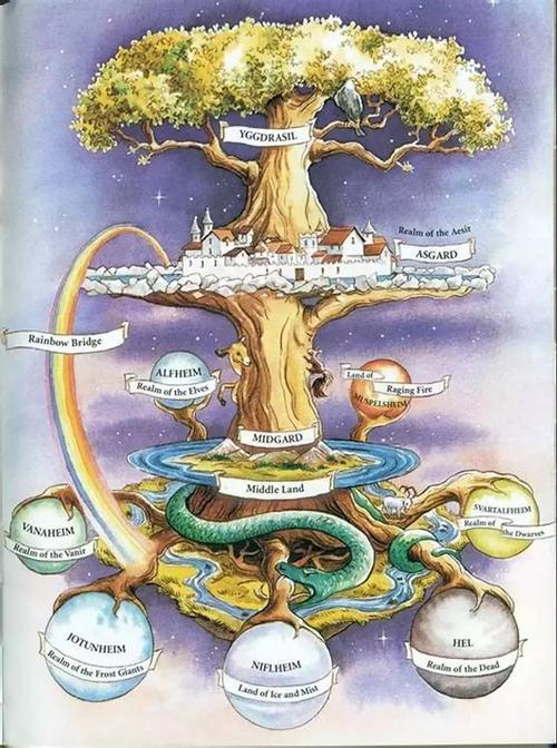 北欧神话中的世界是由世界树所支撑的,而且关于灭亡与重生的观点不象其他神话体系,北欧神话中的神是不完美的,其本身也要面临灭亡的命运,如奥丁为了获得知识牺牲了左眼,被吊在树上九夜、饱受创伤后才得到了象征其力量的长枪。但另一方面,北欧神话相信当万物消亡,新的生命将再次形成,世界上的一切都是循环的。
