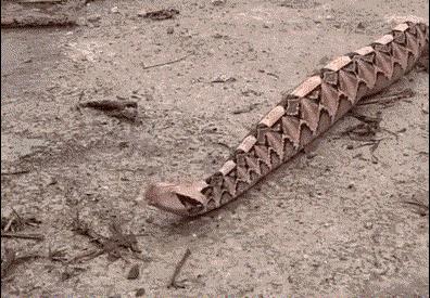 加蓬咝蝰蛇一眼望去像极了"毛毛虫PLUS",可爱肉呼呼的,那攻击速度如何?加蓬咝蝰蛇是毒蛇界属于另类了,他行走的方式和其他的蛇走S型不一样。在他全身枯叶花纹的衬托下,他行走起来很像多脚的毛毛虫,犹如一排小腿快速的运动着。他虽然运动速度和其他的蛇类相比慢很多,但是他攻击猎物的那一瞬间弹力就不一样了,人们形容他出击速度,就像一个大弹簧压扁后突然放开,弹簧的一端突然飞射出去。加蓬咝蝰蛇攻击速度和眼镜蛇不分伯仲。