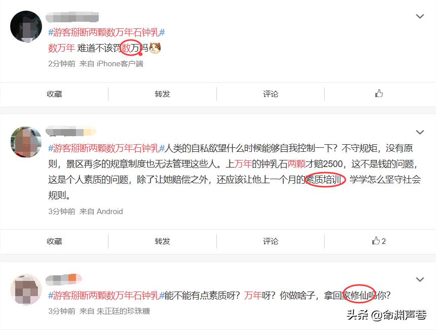 随后湖北宜昌市远安县太清洞景区一百年才生长13毫米的钟乳石又遭到游客攻击,被硬生生掰断;