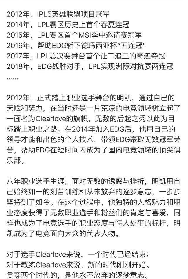 以下还有厂长在职业期间获得的各种荣誉,以及EDG俱乐部对