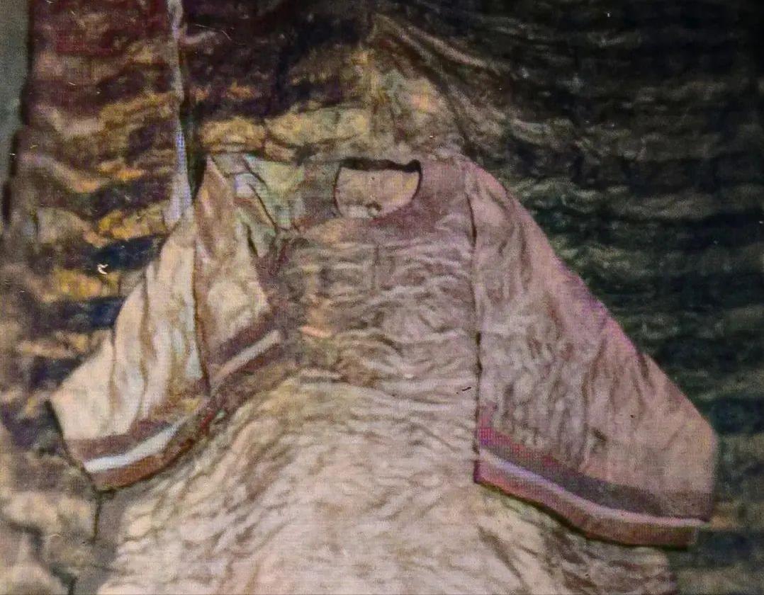 上面的图二是慈禧尸体被包裹的照片,早已毫无体面可言,而下面的图三是当年出土的衣物,在经历了东陵大盗的摧残和数次开棺后,早已氧化得不成样。