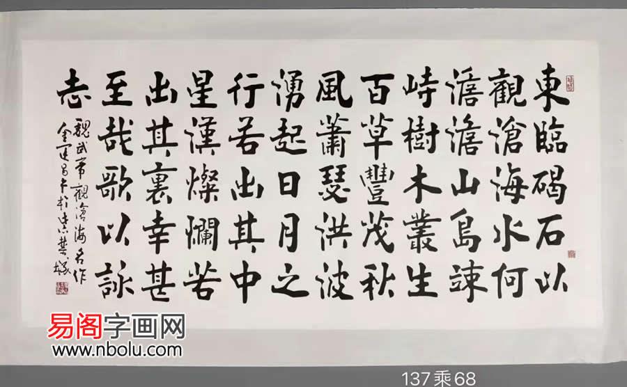 金运昌的书法,师古而不泥古,在汲取传统书法精髓的基础上,大胆改革创新,将现代审美情趣注入传统的书体之中,给作品注入一股新的清新活力。金运昌先生的书法作品,端庄大气,潇洒俊逸,取唐楷之魂,魏碑之长,奇姿超逸,字断意连,作品极富动感,有一种雅俗共赏的审美意趣,蕴涵着一股清雅华贵之气,让无数书法爱好者为之倾心。