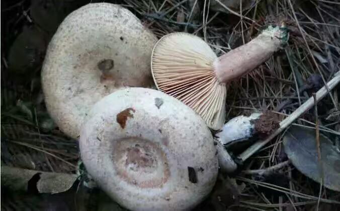 换个颜色吧,这个颜色的松树菌我们这里比较常见。肉较肥厚,色泽清嫰。