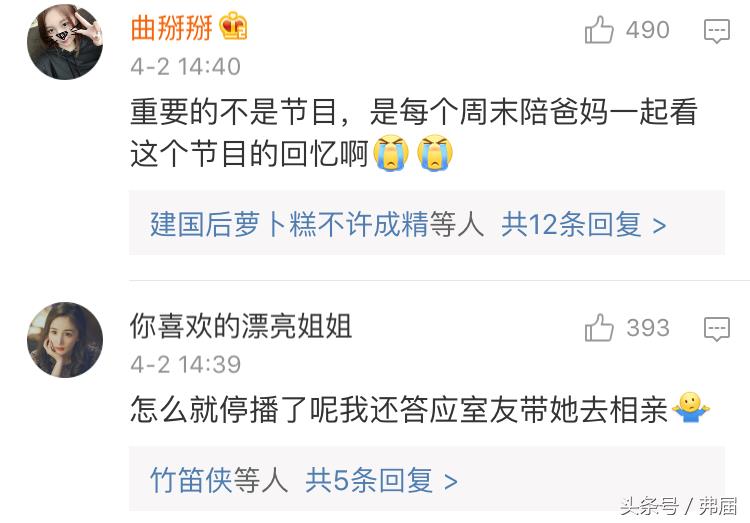 知情人士透露,停播实为节目收视率长期低迷,没有突破,陷入困局导致,改版后的节目将和原版有较大差别。网友纷纷留言表示可惜:再也没有和爸妈一起过周末的电视节目了!