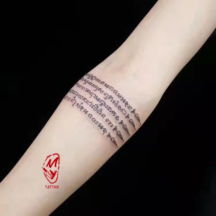 梵文纹身,梵文本身是印度的古典语言。佛教称此语为佛教守护神梵天所造,因此称其为梵语/梵文。纹上梵文,可以保佑自己或家人,寓意平安如意。