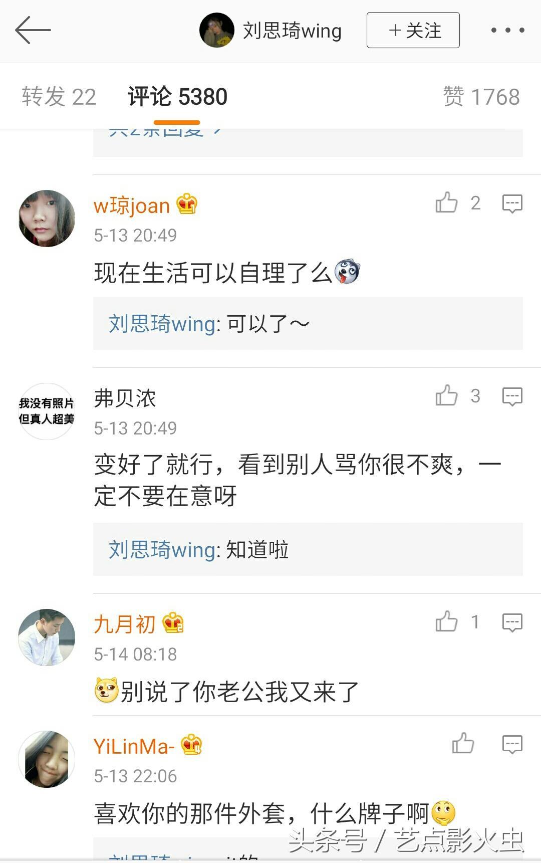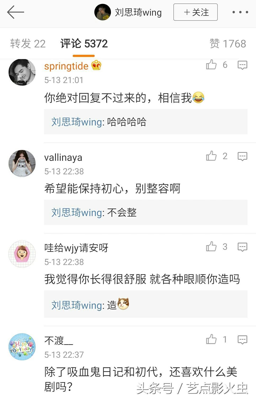 昨天,刘思琦发微博称,可以让网友任意提问,自己会回答,从微博的评论回答中,我们发现,刘思琦爸爸是个生意人,她最爱吃的食物是生蚝和土豆,喜欢的美剧有吸血鬼日记和破产姐妹,最喜欢的服装品牌是it,声称自己不会整容,如果广大网友想要看她直播,他可以考虑直播一次,通过变形之旅,她学会了自己的事情自己做,爱弟弟,也更懂得感恩父母。