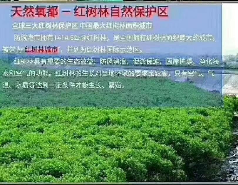 北部湾畔唯一的全海景生态海湾城市,拥有连片的城市红树林,也因此而拥有高含量的负氧离子,被称为中国天然氧都;更有十万大山国家森林公园环绕,养护着珍稀植物——金茶花;干净的空气质量也让向来对环境以“挑剔”出名的白鹭流连……