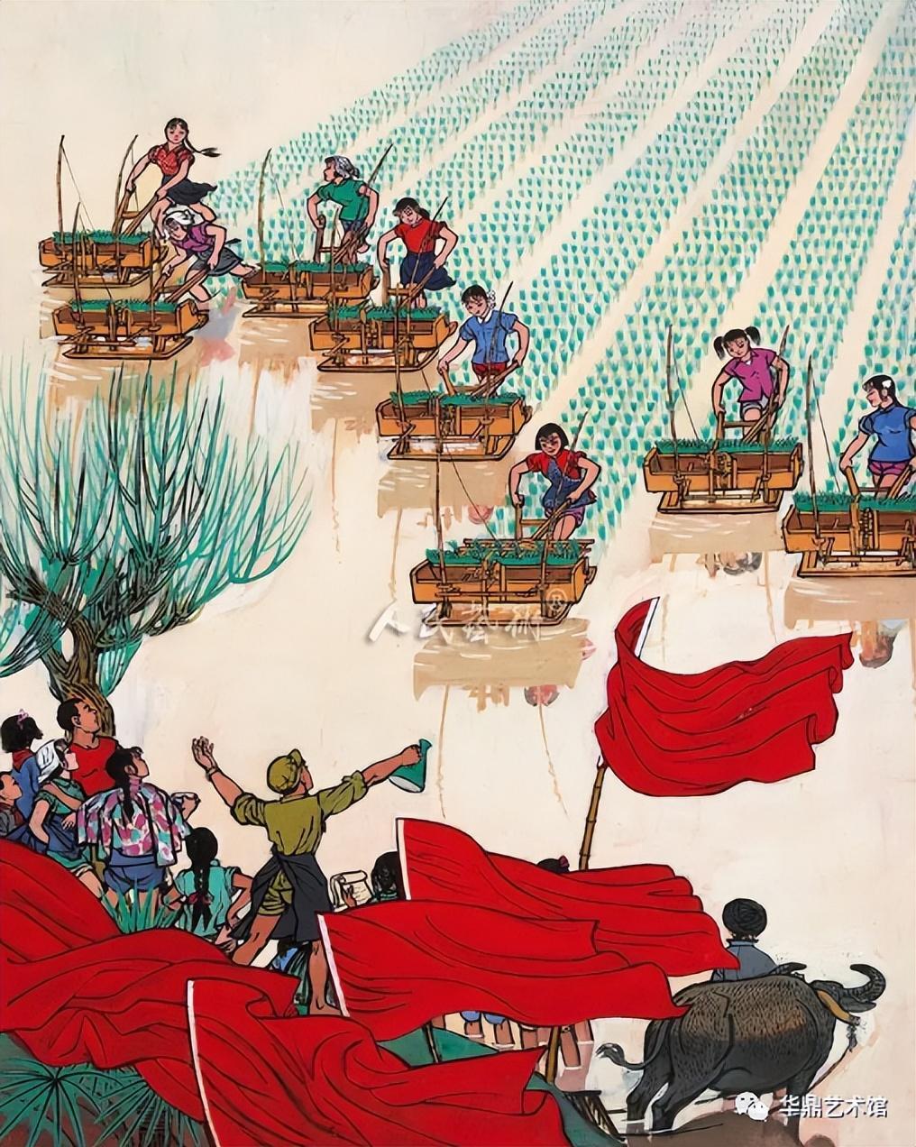 周令钊的绘画作品也适应时代,都是具有历史意义的作品。他于1951年创作完成的《五四运动》是重大历史题材绘画中非常成功的一件油画作品,该作品也被中国革命历史博物馆馆藏。随着国家发展,国家建设格局的改变,出现了大量的公共空间,这对于这些公共空间的装饰也成了重点。这个时候周令钊受邀为重建的黄鹤楼设计一层大厅的壁画,他创作完成了《白云黄鹤》,在当时产生了轰动,这也成为了一件具有里程碑意义的重要作品,之后还为人民大会堂设计创作了石雕壁画《松竹梅》、湘绣屏风画稿《韶山冲》,北京饭店壁画《古都集翠》,岳阳市南湖宾馆丙稀壁画《春风又绿盘石洲》等。